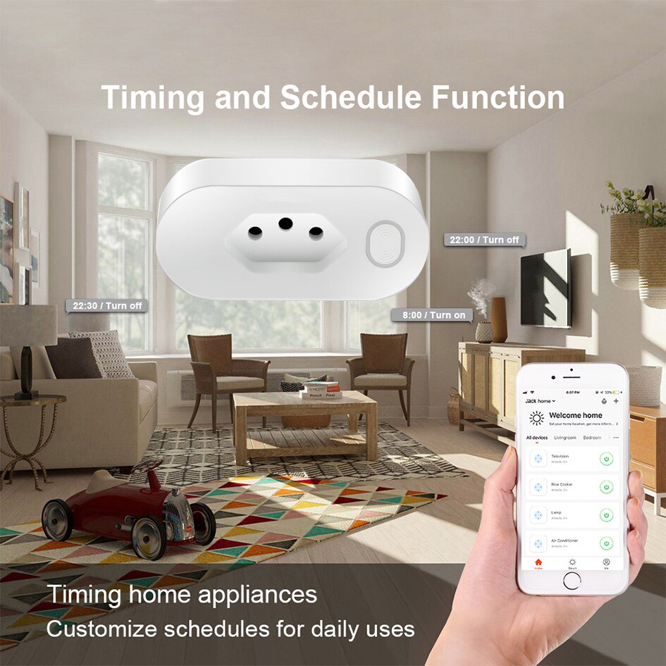 AVATTO Tuya 16A Brasilien Standard Smart Stecker mit Power Monitor, smart Leben APP WiFi BR Smart Buchse Arbeitet für Google Hause, Alexa