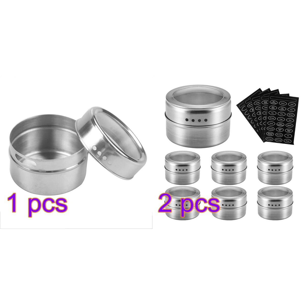 Magnetic Spice Jars Tins Stainless Steel Spice Jars Set With Clear Lid Labels Seasoning Pepper Spice Storage Container Box